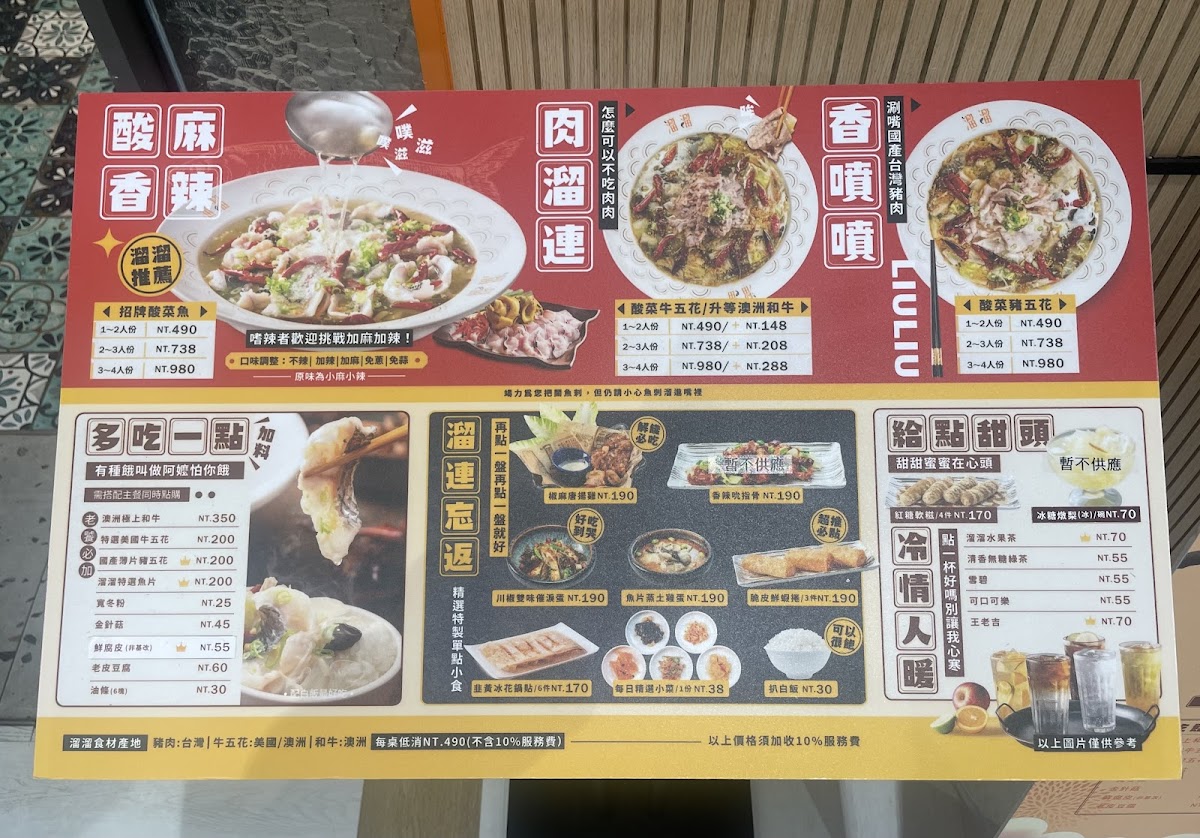 The menu at Liu Liu Sauerkraut Fish Far Eastern Sogo Kaohsiung Branch offers a thoughtful selection of classic Sichuan and Taiwanese-inspired dishes, presented in a style that balances comforting home cooking with vibrant flavors. It’s the kind of place where you can enjoy a satisfying meal any time of day, whether you’re stopping by for a casual lunch or a relaxed dinner with friends and family.